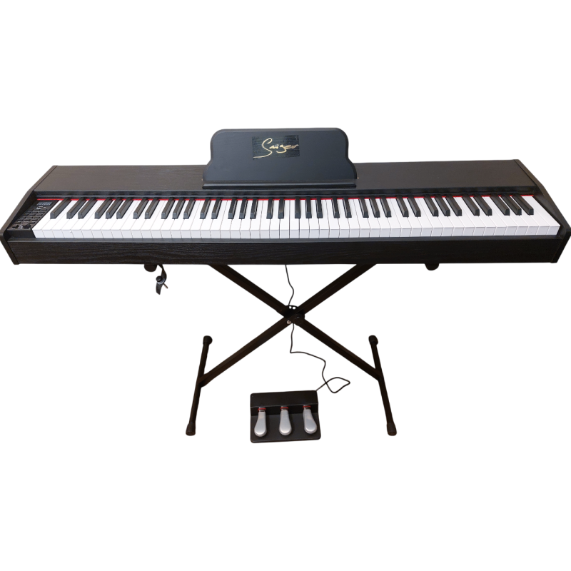 The Vines DP-121-S Digital Piano is a versatile and affordable 88-key instrument designed to deliver a realistic piano experience for beginners and intermediate players. Featuring full-size weighted keys with hammer action, it provides a natural touch similar to an acoustic piano.